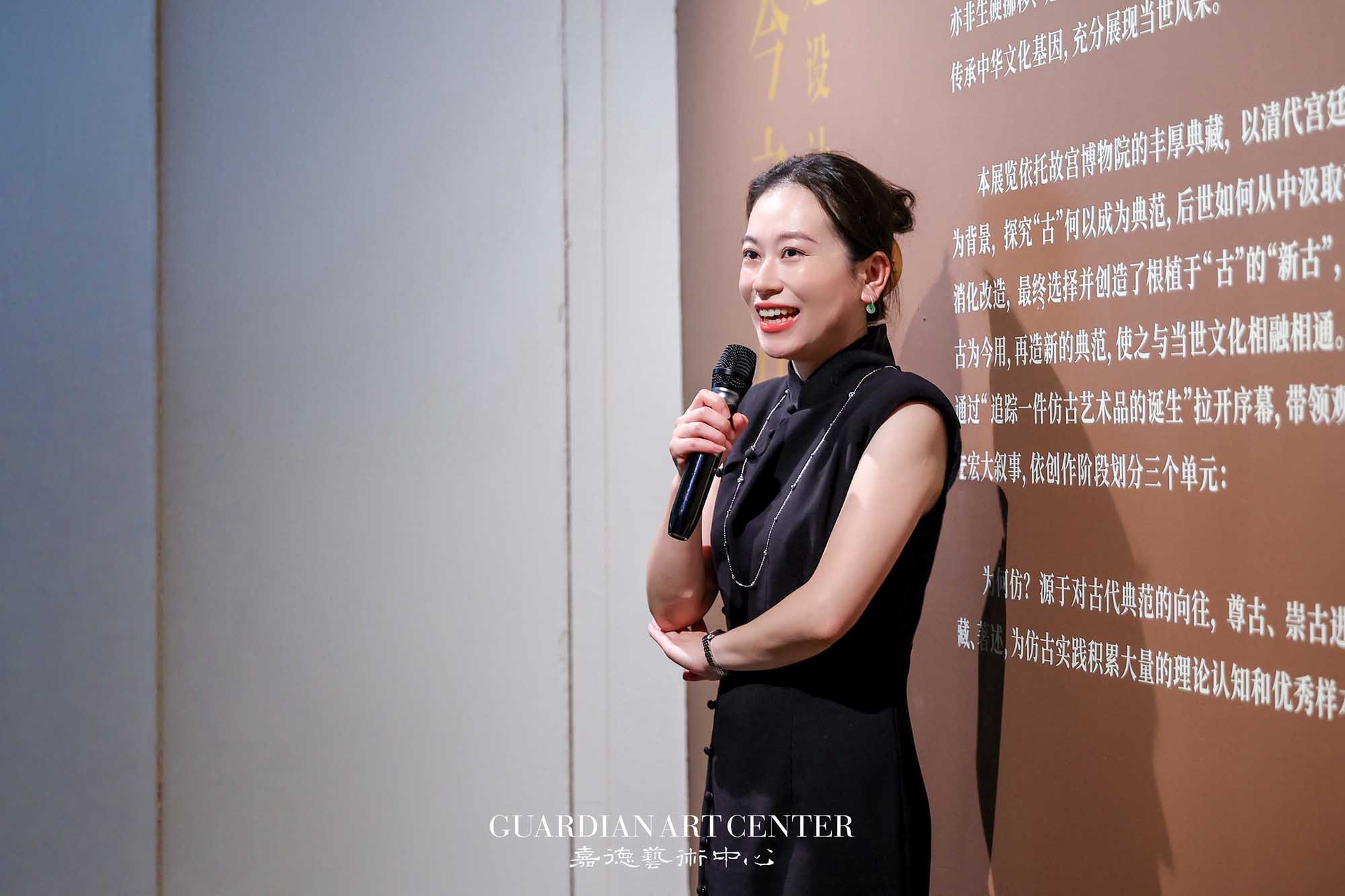 开幕式现场,故宫博物院器物部张燕芬博士为到场嘉宾进行开幕导览