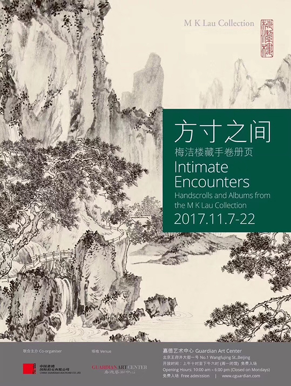 由中国嘉德国际拍卖有限公司和香港梅洁楼联合主办的「方寸之间 — 梅洁楼藏手卷册页」展,于2017年11月在嘉德艺术中心隆重开展。“梅洁楼藏画”被誉为亚洲最具价值的20世纪中国水墨书画私人收藏之一,首次诚意呈现50件极少公开亮相的水墨手卷及册页作品。这些高规格的艺术珍品出自享负盛名的中国书画大师,包括吴昌硕、吴湖帆、溥儒、张大千和陆俨少,体现了水墨艺术近百年来的非凡创意和多元面貌,同时也展示了“梅洁楼”珍藏之手卷册页的文化成就与多元特色,打开嘉德艺术中心崭新的水墨视线。展出作品中的手卷及册页均为书画作品的装裱形式,手卷为横幅长画,展卷欣赏时犹如展开一次互动旅程。而册页则将多幅绘画集结,装裱成书本形式。梅洁楼藏画的「方寸之间 — 梅洁楼藏手卷册页」展旨在凸显这些艺术形式可以近距离接触的特质,让参观者感受惊喜、兴奋和探索的乐趣。