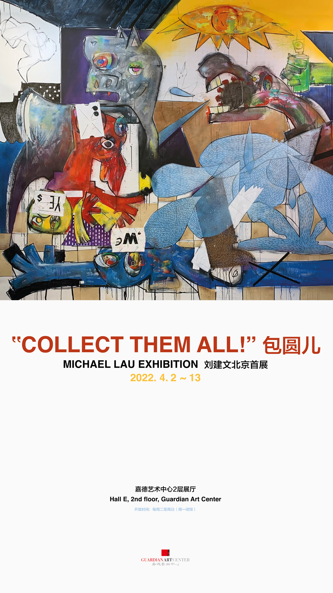 The exhibition “COLLECT THEM ALL!” at Beijing Guardian Art Center presents Michael Lau’s latest works from the past two years. Through the four series titled “Method”, “First Encounter”, “Soliloquy”, and “Mad Child”, the artist showcases his reflections on society, insights into life, and introspection of the self during these two years of global standstill. Among them, a 5.5-meter large-scale painting pays tribute to the master, Pablo Picasso. In today’s world, ravaged by pandemics and plagued by conflicts, with the ever-changing international landscape, can we unite as individuals to overcome these challenges together? This artwork represents the artist’s hope and aspiration.