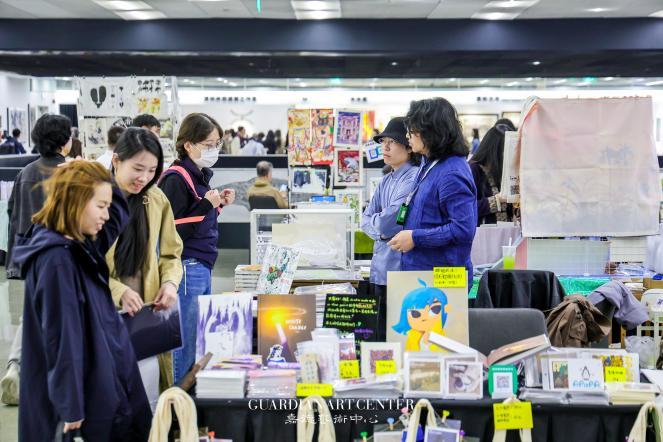此外,本次大会还在嘉德艺术中心二层展厅特别设立“艺术市集”,与一层的画廊展区实现了有机联动,构建出兼具学术性与趣味性的展览场景。来自中外的青年艺术家们展示了他们在木刻、铜版、丝网等多种媒介上的实验性探索与个性表达,为本届大会注入了蓬勃的青春气息。其中,中央美院版画系的青年学生在市集展区展出了他们的“Z世代”作品,彰显出新生代艺术家们的多元视野与无穷创作潜力。
