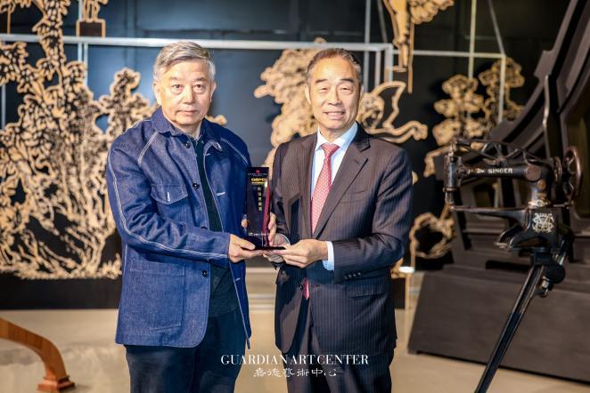 嘉德艺术中心总经理寇勤先生为杰出贡献奖获奖者吴长江教授颁奖