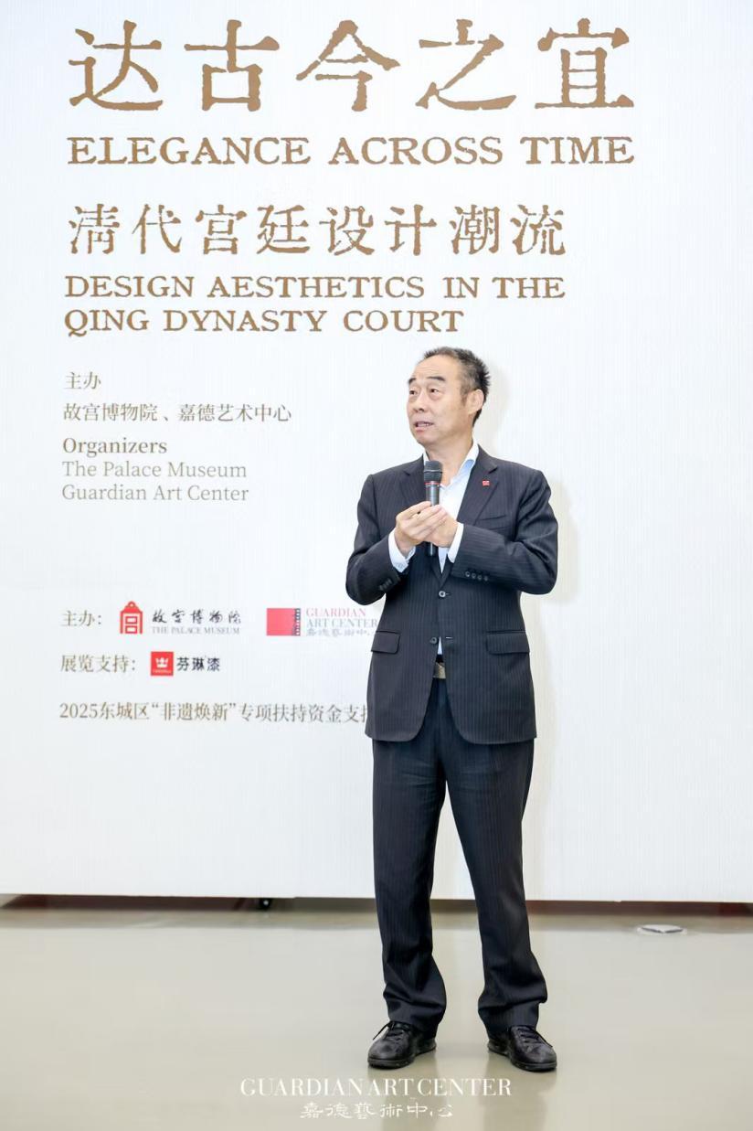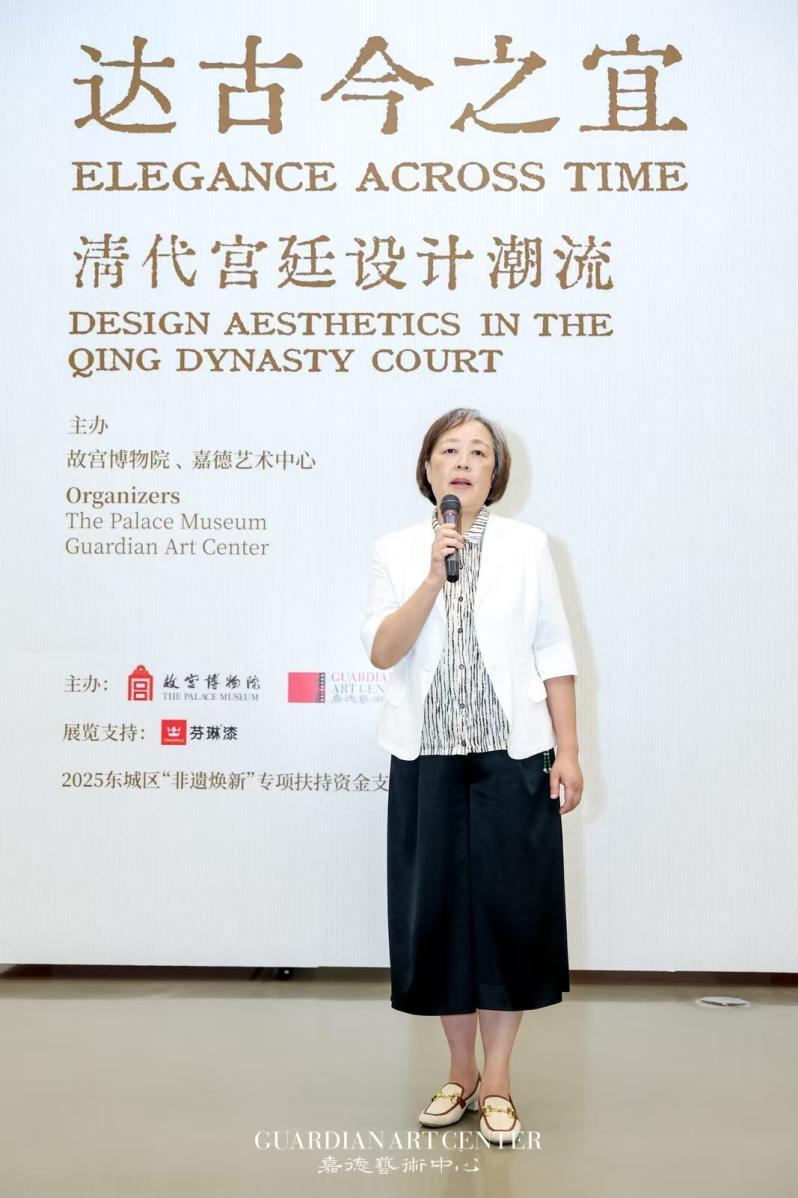 开幕式现场,故宫博物院副院长朱鸿文女士表示,“达古今之宜——清代宫廷设计潮流”展以“达古通今”为主题,通过200余件文物,展现了清代宫廷艺术在材料、工艺、设计中的传承与创新,生动诠释了中华文明的连续性与创新性。展览不仅呈现了古代工匠的高超技艺,更体现了传统文化的时代价值。本次展览是故宫博物院与嘉德艺术中心的第七次合作,在“七星高照”的美好寓意下,双方优势互补、再度携手,期待以高水平的展览持续激发观众对中华优秀传统文化的热情与认同,展现文化自信的多维表达。